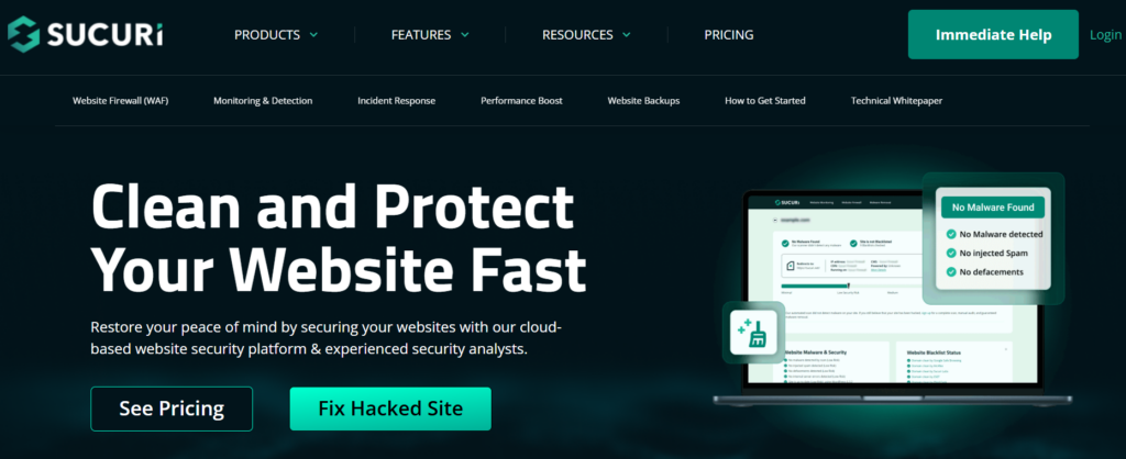 On its website, Sucuri says that it has a firewall that stops malicious data and DDoS attacks. After a security hack, Sucuri helps website owners fix the problems with their site’s security.