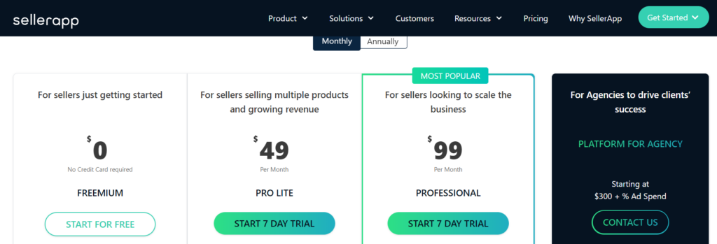 SellerApp is a market intelligence tool that helps Amazon merchants, agencies, and brands do better business. With the help of SellerApp, you can make your Pay-Per-Click advertising campaigns run on their own and find profitable products to sell.