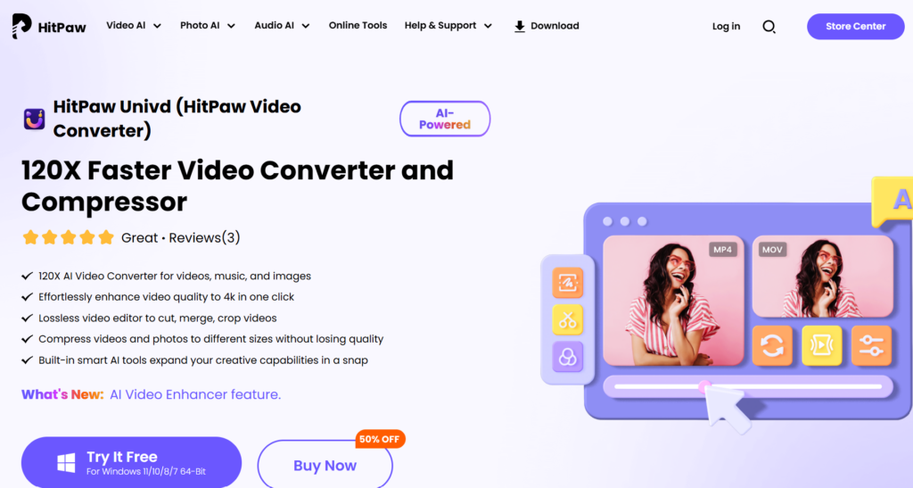 Features: HitPaw includes AI-driven video upscaling, background removal, and a one-click editing application, making video editing easy and efficient