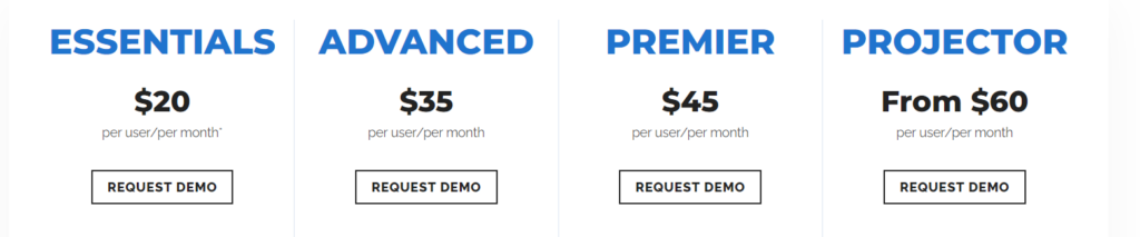 | BASIC $5.9 user/month Billed annually or $7 month-to-month | STANDARD $8.4 user/month Billed annually or $10 month-to-month | PREMIUM $16.7 user/month Billed annually or $20 month-to-month |