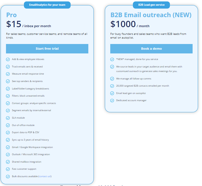 There is essentially no setup needed, and it has a simple and attractive user interface. When you link your email account to EmailAnalytics, it immediately begins collecting your email history and presents it in charts, tables, and graphs so you can easily gain insight into your email usage.