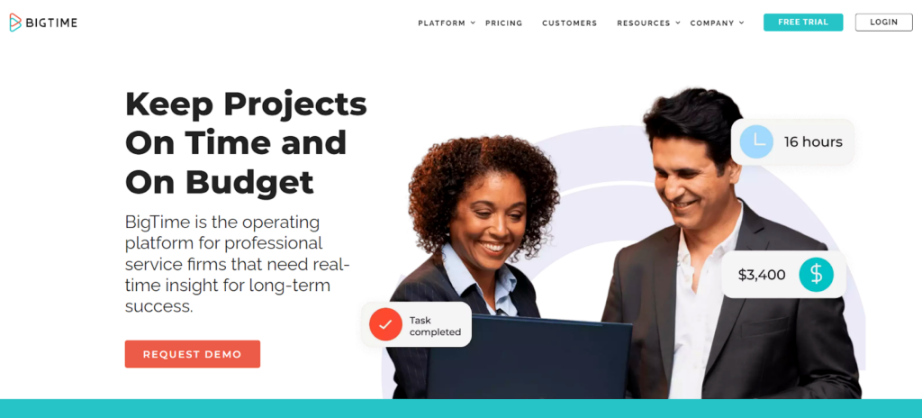 BigTime’s extensive library of customizable modules and more than 30 different types of timesheets. It has essential time-tracking features that help you save time and improve team performance.