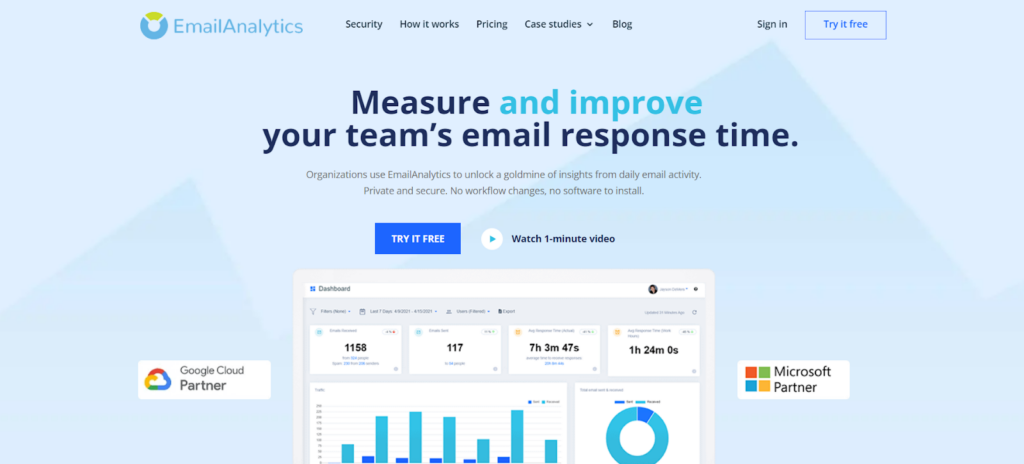 EmailAnalytics is a unique time-tracking software that shows how you (or your team) spend time with email. It tracks critical parameters, including the number of emails sent and received by hour, day, and response time, because so many people work from home.