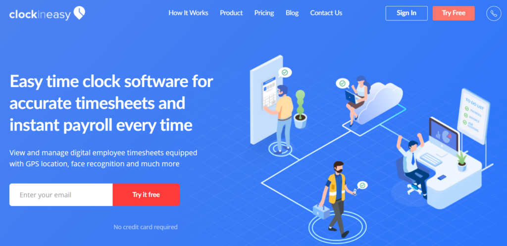 ClockInEasy is a cloud-based time clock system that lets employees track their hours. Available for iOS and Android devices, ClockInEasy allows employees to clock in by snapping selfies at job sites or by entering employee information from other lists. HR teams can monitor workforce timesheets with simple reporting tools.