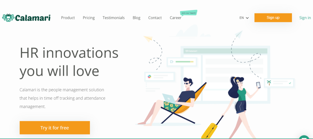 The Calamari HR management software makes people management easier by allowing you to track attendance using QR codes and iBeacons. You can get notifications about upcoming absences and time-off requests, as well as manage multiple offices in countries worldwide.