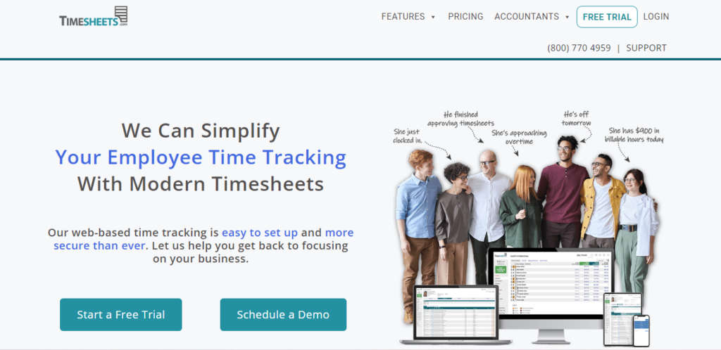 It offers flexible time tracking with GPS, ideal for businesses with both office-based and remote workers. Its user-friendly interface and in-depth reporting capabilities ensure that managers can track employee hours and activities accurately. Timesheets.com stands out for offering project tracking and expense management as additional features.