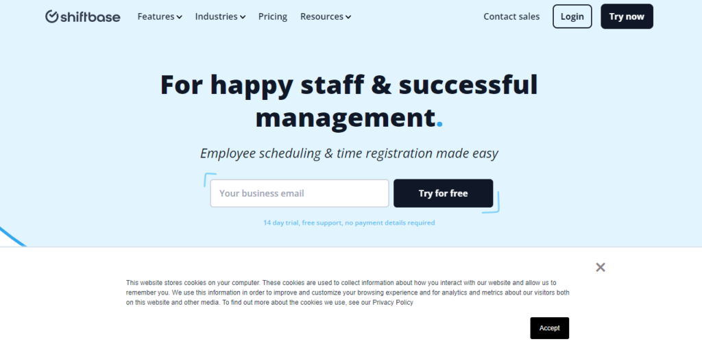 Shiftbase is a cloud-based workforce management tool that lets businesses streamline employee schedules, time-tracking, and human resources operations. Organizations can record work hours by schedule, mobile app, or even onsite attendance systems!