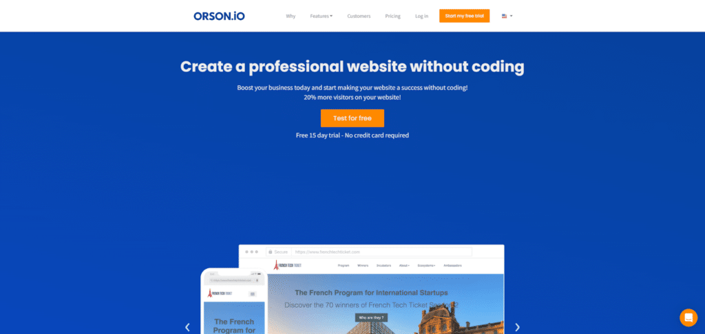 Orson has a powerful and easy-to-use website builder that makes it easy to make a professional website. Orson is an all-in-one piece of software that includes servers, storage, a domain name, and HTTPS. Only think about your website.