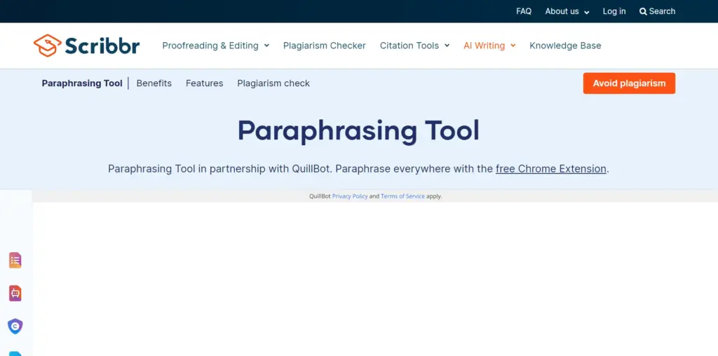 The Scribbr Paraphrasing Tool provides precise and contextually accurate rewording, making it a top choice for students and academics. Its standout feature is the seamless integration with citation tools, ensuring your paraphrased content is unique and properly referenced. This tool enhances the quality of your writing and streamlines the process of maintaining academic integrity.