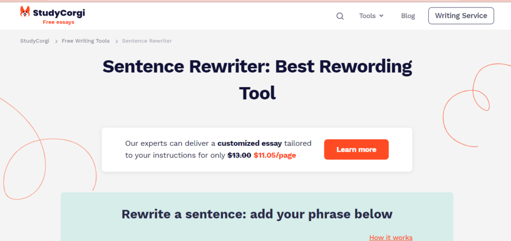 Studycorgi is an online sentence rewording tool That has been in business for seven years. This paper writing service is available to students who wish to improve their grades in academic writing but lack the time or expertise to do so themselves.