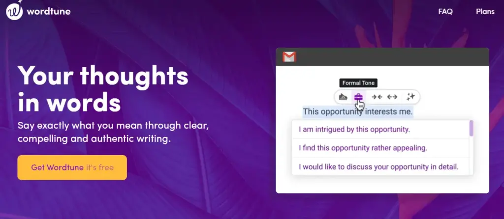 Wordtune is another well-liked article rewording tool. It serves as both a rewording tool and a writing assistant. Wordtune does this by rewriting difficult-to-understand sentences and phrases using Natural Language Processing (NLP).