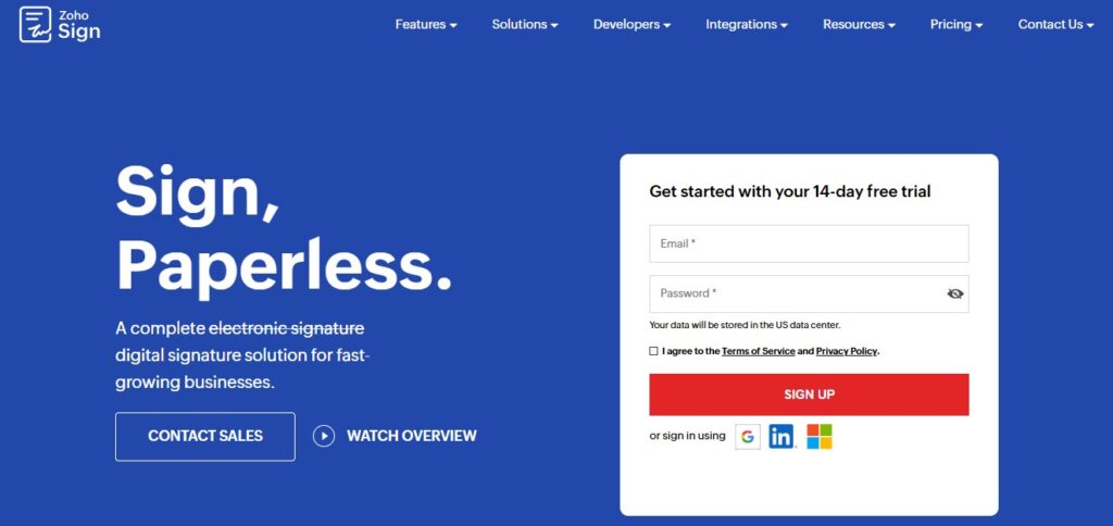 Zoho Sign integrates seamlessly with the broader Zoho business suite, providing compliant e-signing alongside native CRM, accounting, and project management connections. This unified approach delivers significant cost savings through consolidated subscriptions and streamlined compliance management across multiple business functions.