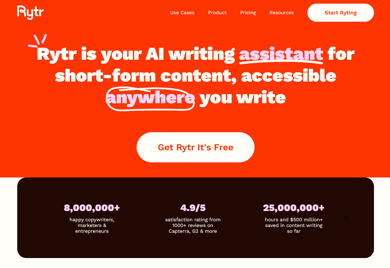 Rytr is an AI writing assistant that helps you create high-quality content, in just a few seconds, at a fraction of the cost!