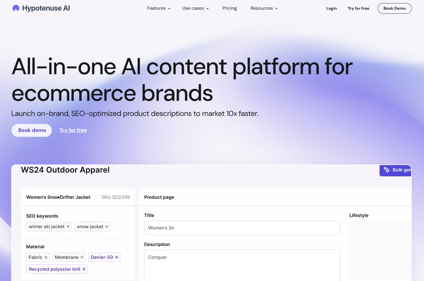 - The Hypotenuse ai content generator is excellent for content optimization, blog ideas, and product descriptions for Shopify posting.