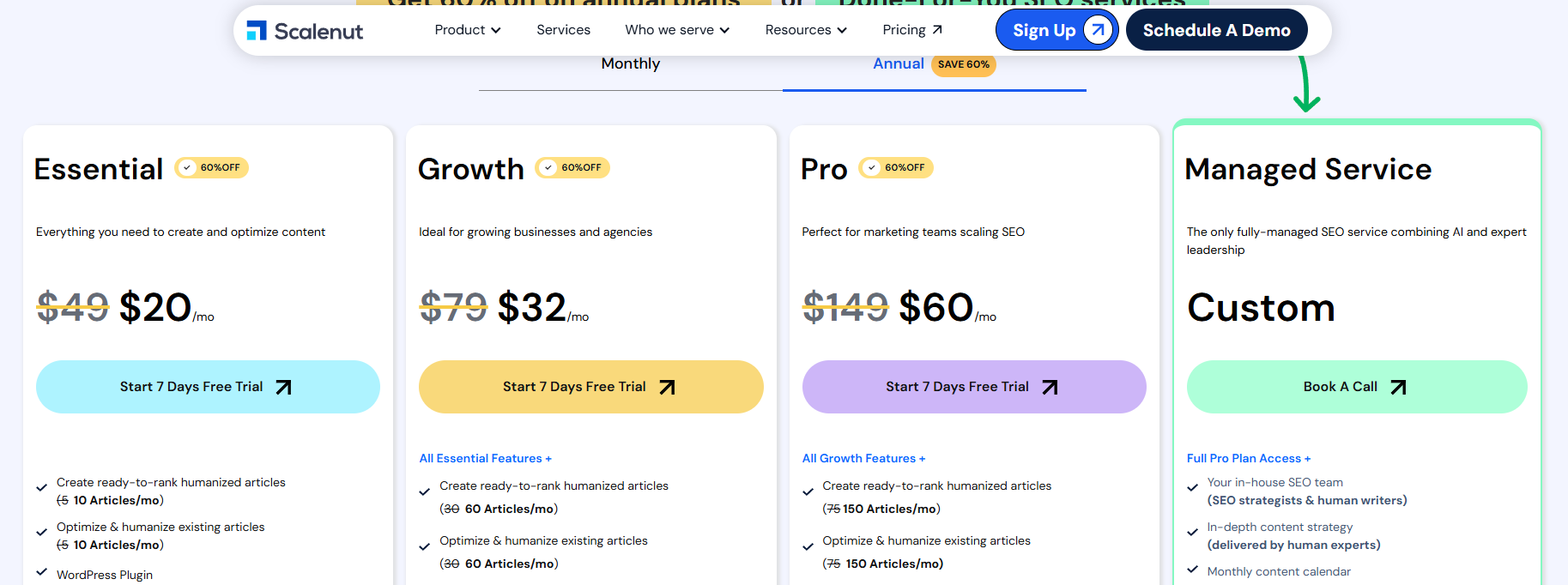 - Pro Plan: $60/month for unlimited words and SEO analysis reports