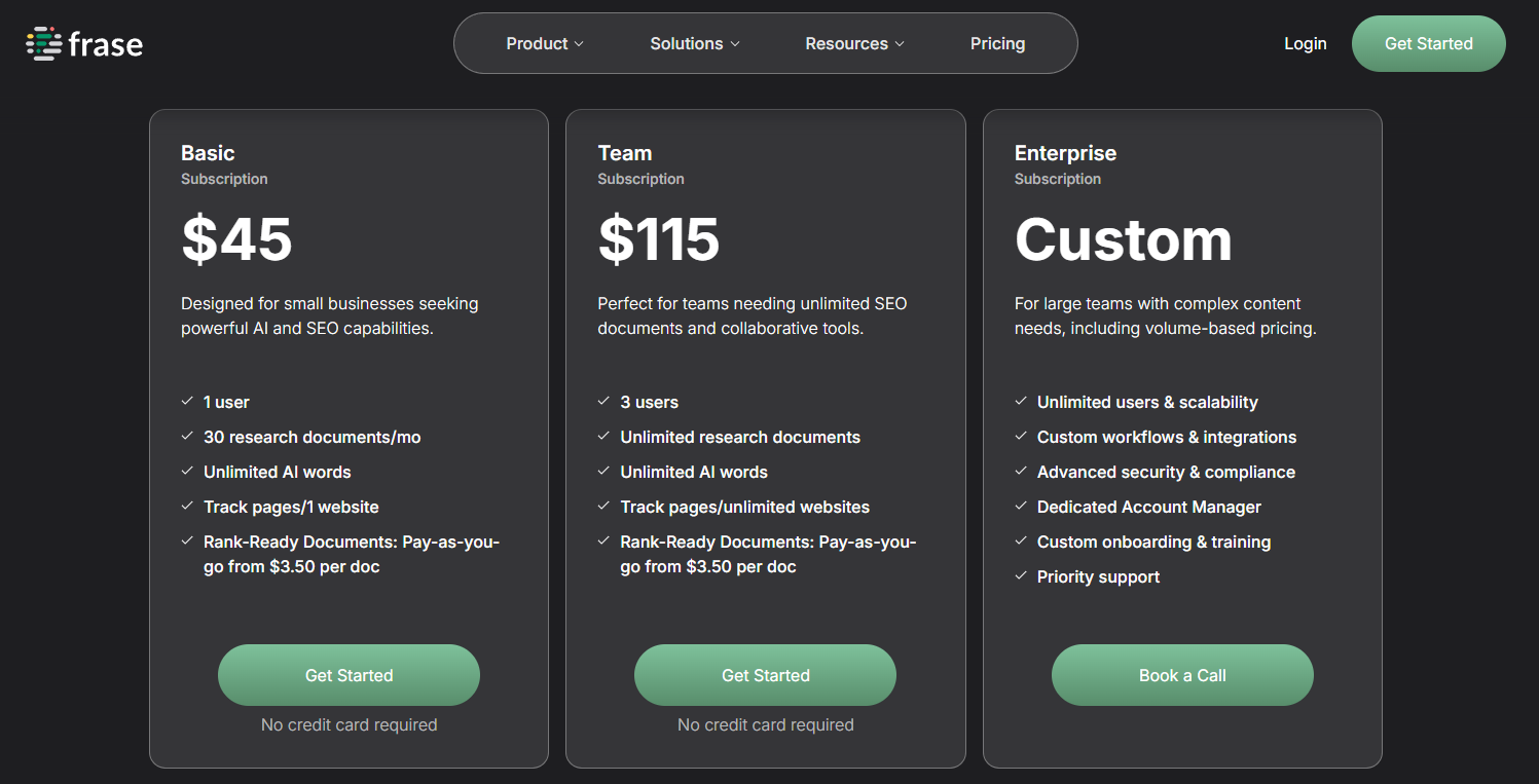 - Solo Plan: Get up to four articles using Frase free ai content generator for $14.99/month