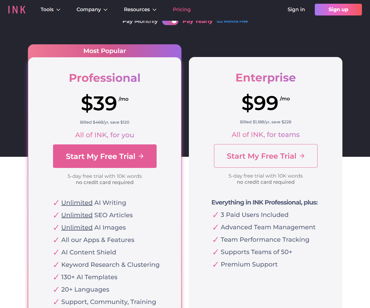 - INK has four-in-one tools (AI creator, SEO optimizer, content planner, and copywriting assistant) to generate marketable content with less human effort.
