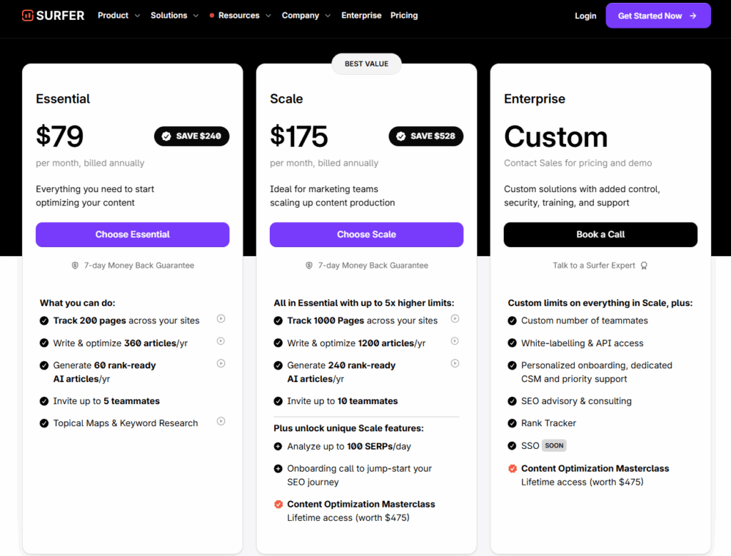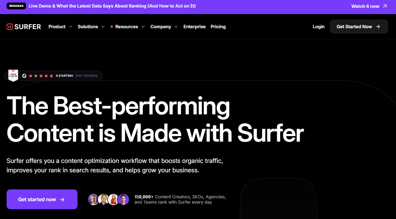 Surfers’ automatic content optimization tools help users create high-performing long-form content that is most likely to rank on Google.