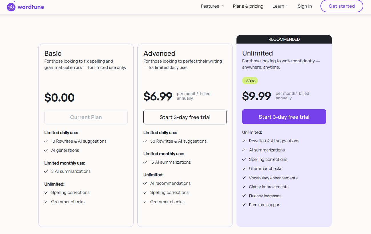 - Premium Plan: $9.99/month for unlimited access to all ai writing assistant tools