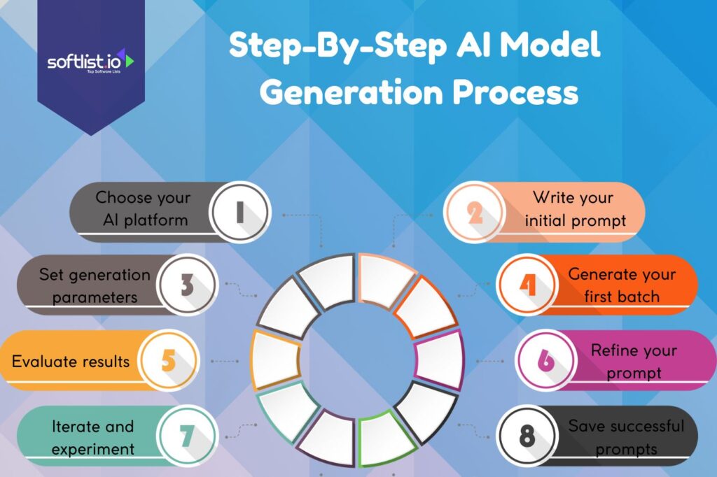 Step-by-step AI model generation begins with preparation and planning. You’ll need to define your creative goals and gather reference materials before writing your first prompt. Many platforms also include an AI text generator to help you craft stronger prompts, captions, and variations faster.