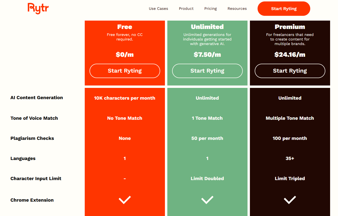 - Rytr has the best writing tools for social media posts and blog posts, including marketing copy and landing pages that can potentially appear on search engines’ suggestions.