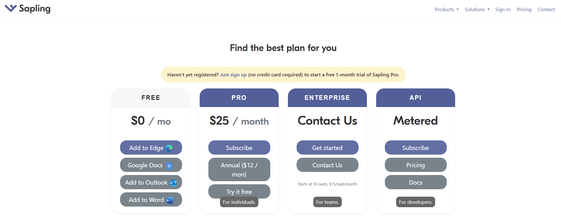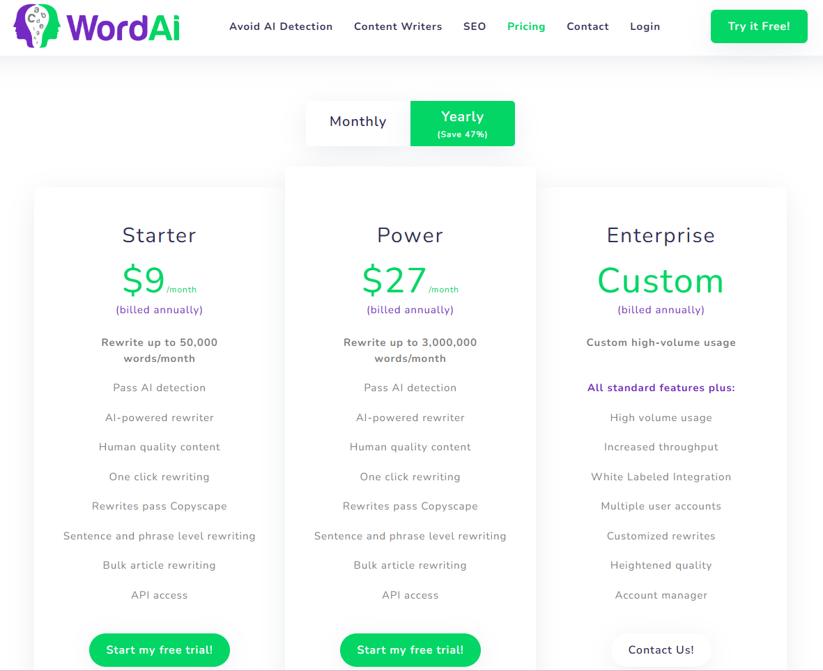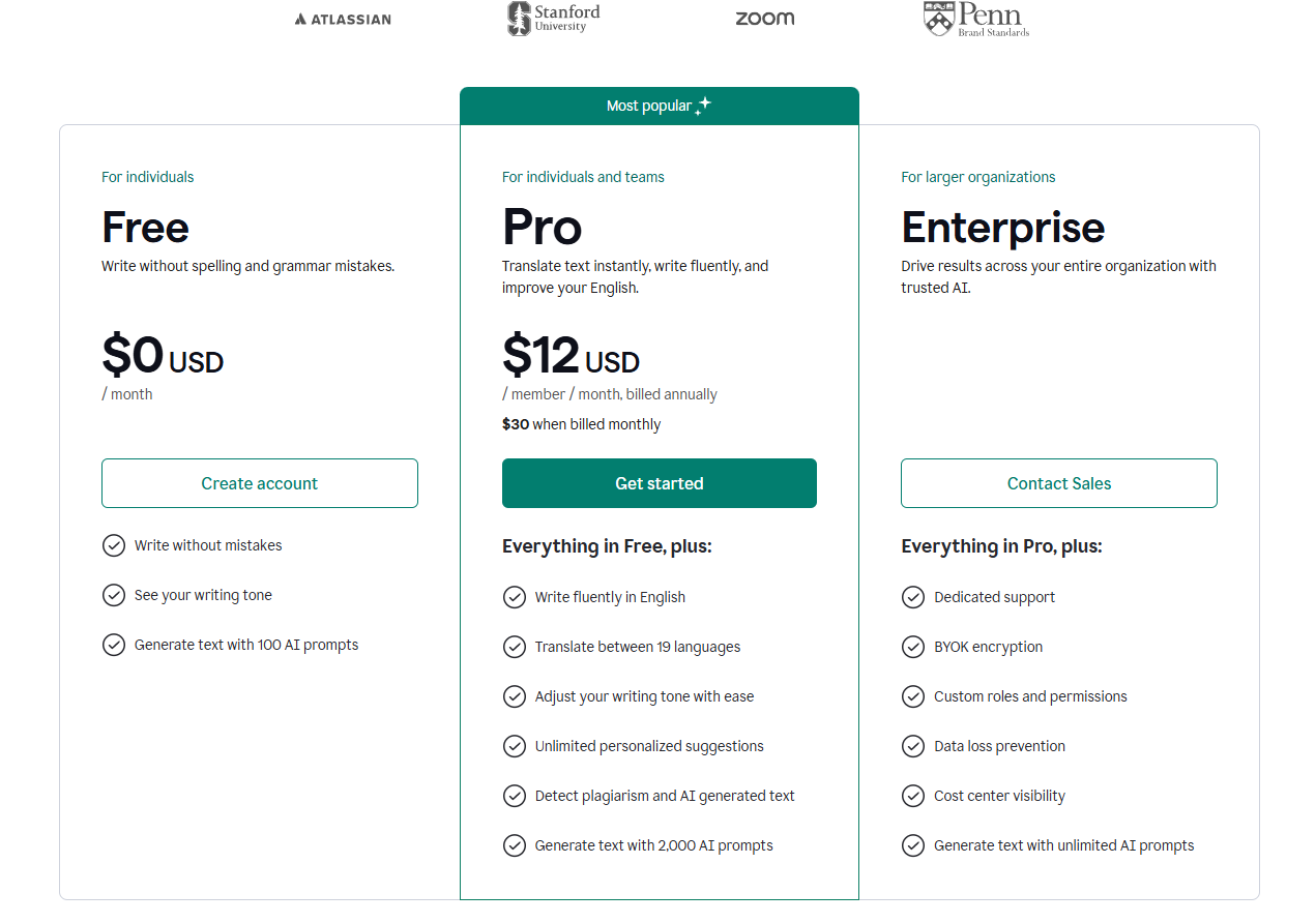 Enterprise: customized price for free selection of ai writing tools to match the writing style of your brand.