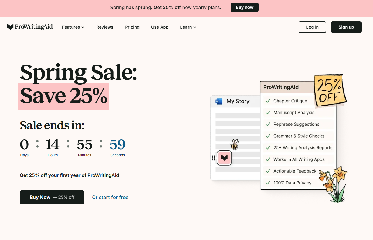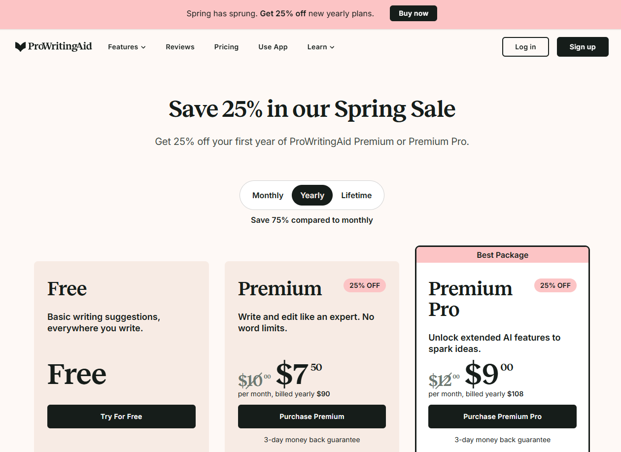 One-time payment: $399 for lifetime access to the ProWriterAid ai writing software.