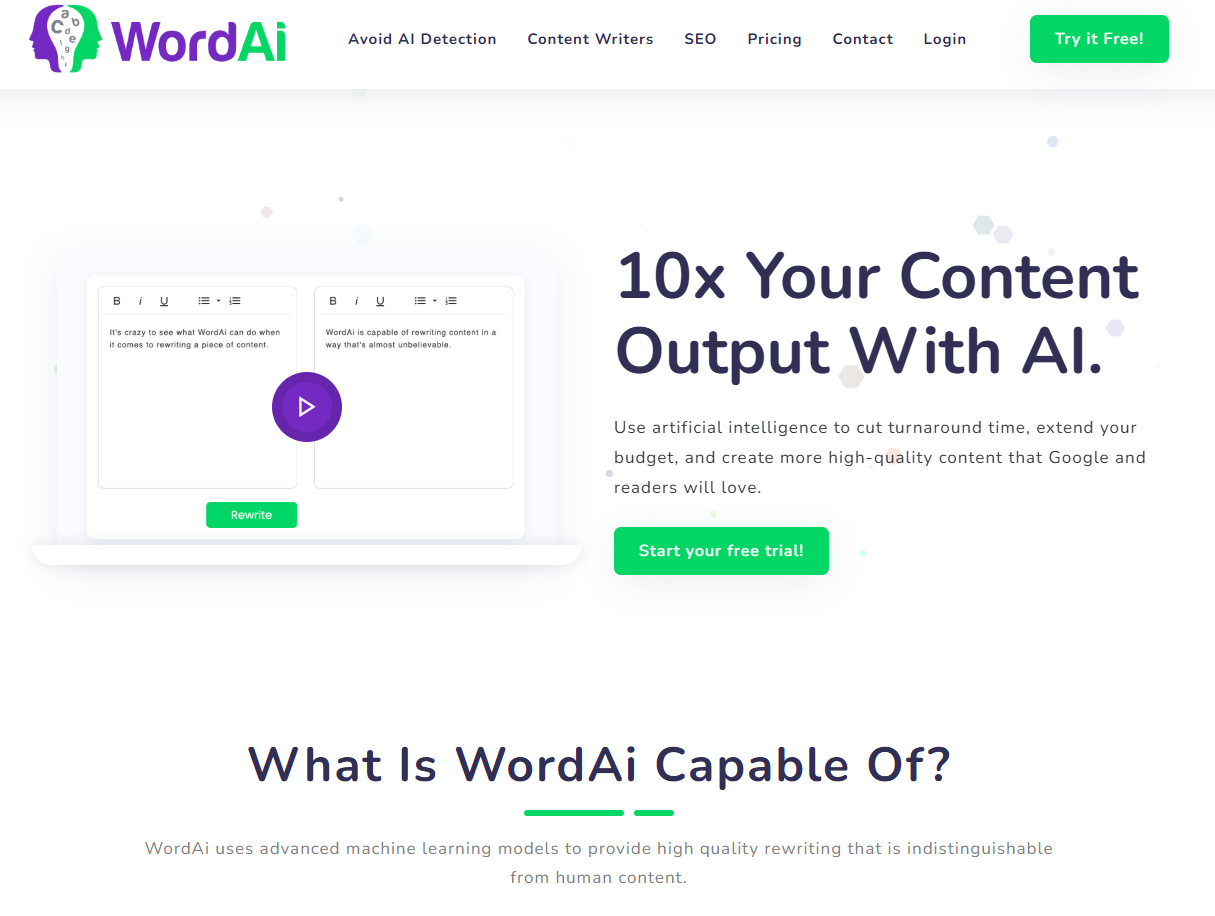 WordAI uses machine learning models to understand how it will write content based on the user’s rules and parameters.