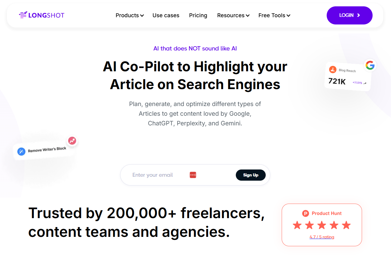 A long blog post? No problem. Save yourself the hassle of manually writing any content with the Long shot ai writer.