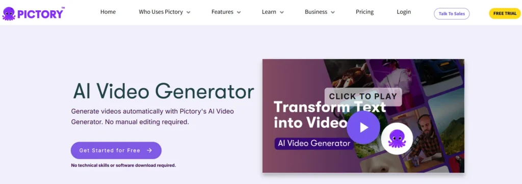 Pictory’s AI-driven video generator is known for converting text into engaging video content, saving users time by automatically pairing visuals with their script. This tool is perfect for transforming blogs, articles, and other written content into shareable video formats. Pictory’s text-to-video capability is especially valuable for marketers and educators aiming to expand their reach with minimal editing time.