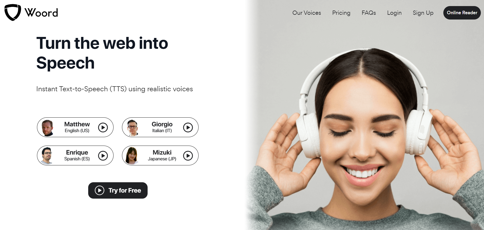 Use Woord to turn text on the Web into audio. Text-to-Speech (TTS) works right away and uses authentic voices.
