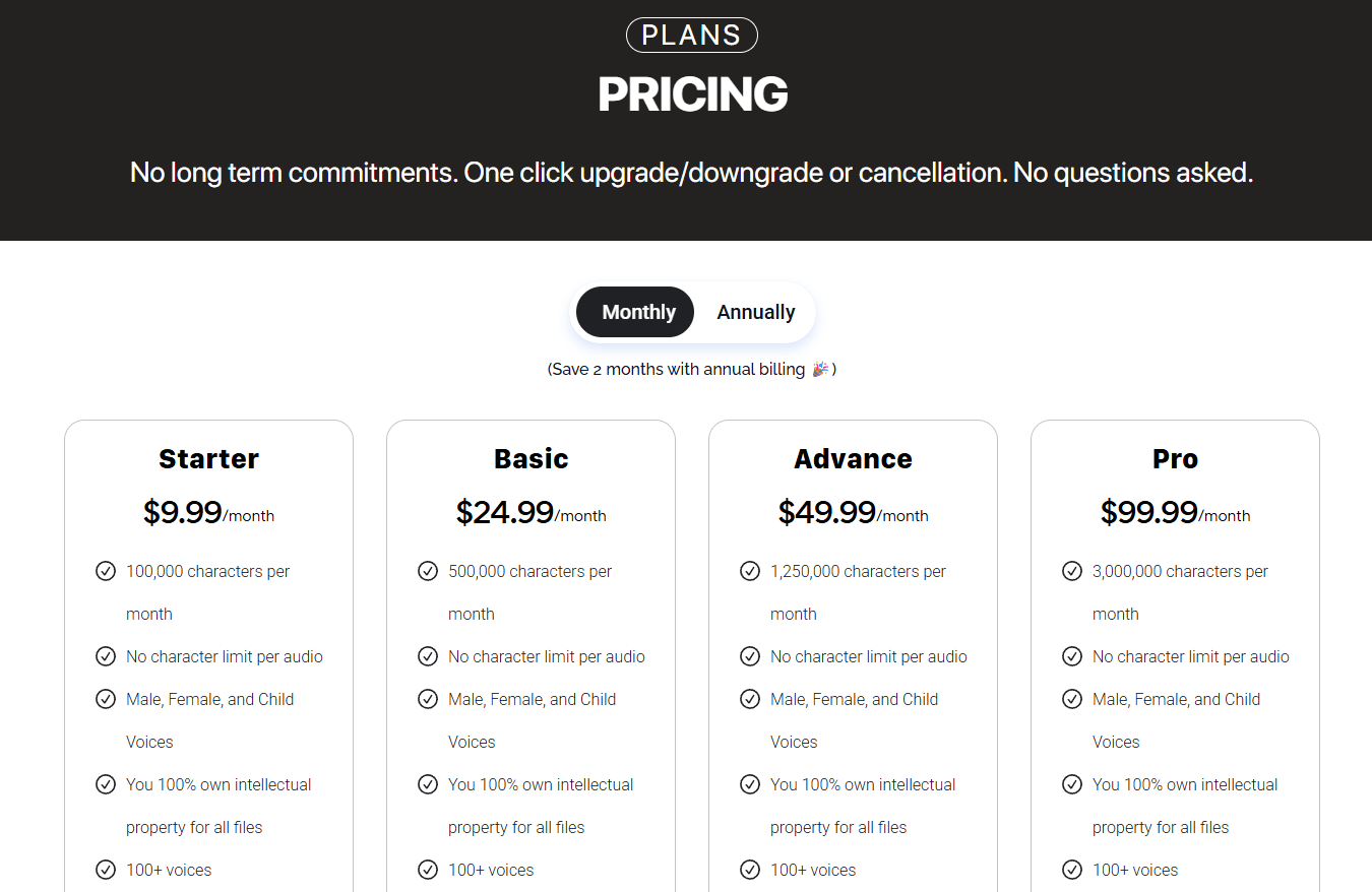 Looking for AI voice generator that offers affordable monthly price plans?