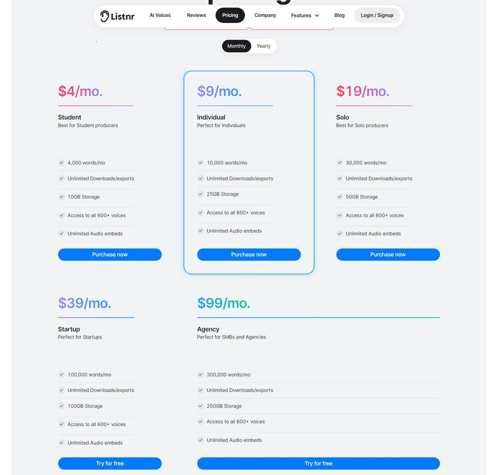 Click here to see Listnr’s Pricing!