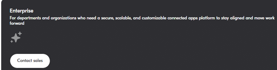 If your department or company is searching for a secure, customizable, and flexible platform for connected apps to keep everyone on the same page while working collaboratively, look no further. With the Enterprise plan, you get the following: