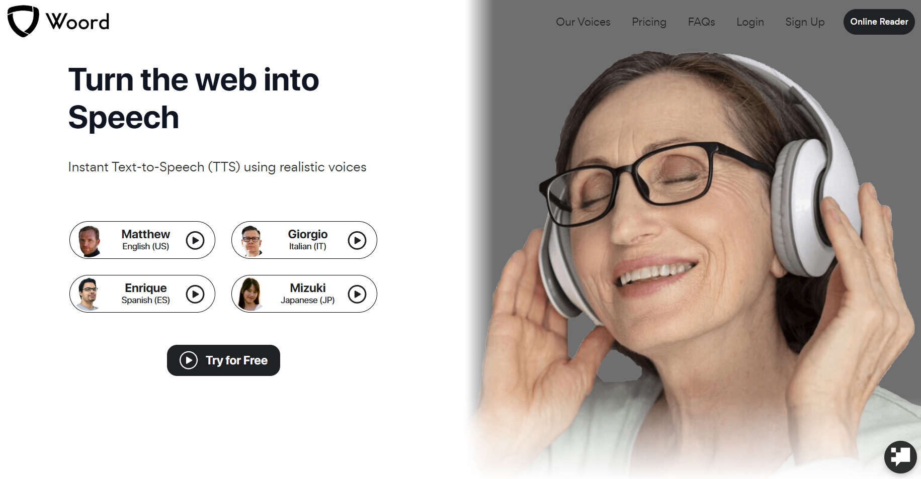 Woord is an online text-to-speech (TTS) converter that uses realistic voices to convert written content into audio.