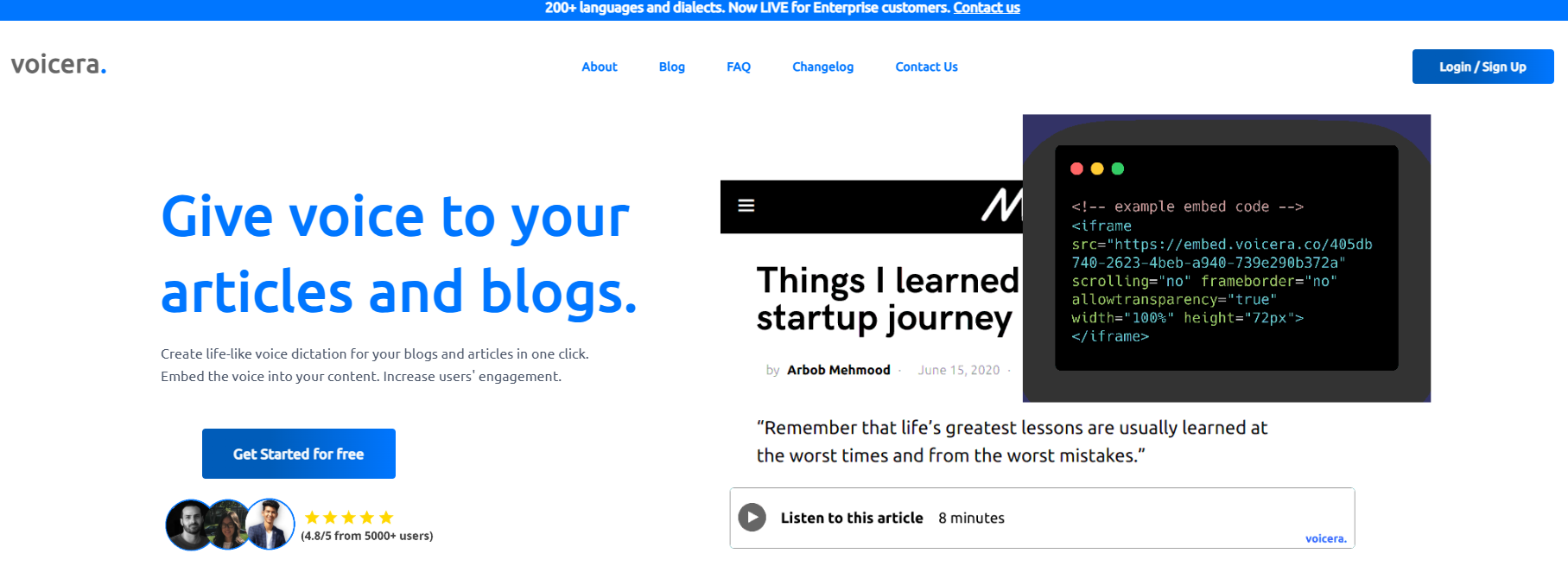 Voicera is a free online tool that gives your articles and blogs a voice. You can create natural-sounding voice dictation for your content with a single click.