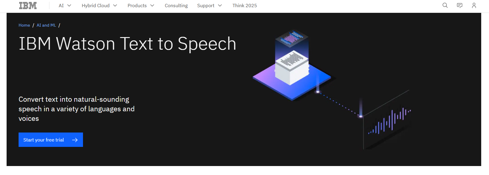 With IBM Watson Text to Speech, you may convert text into natural-sounding speech in various languages and voices. You can use this technology to create a voice service that provides a natural and human-like experience for users.