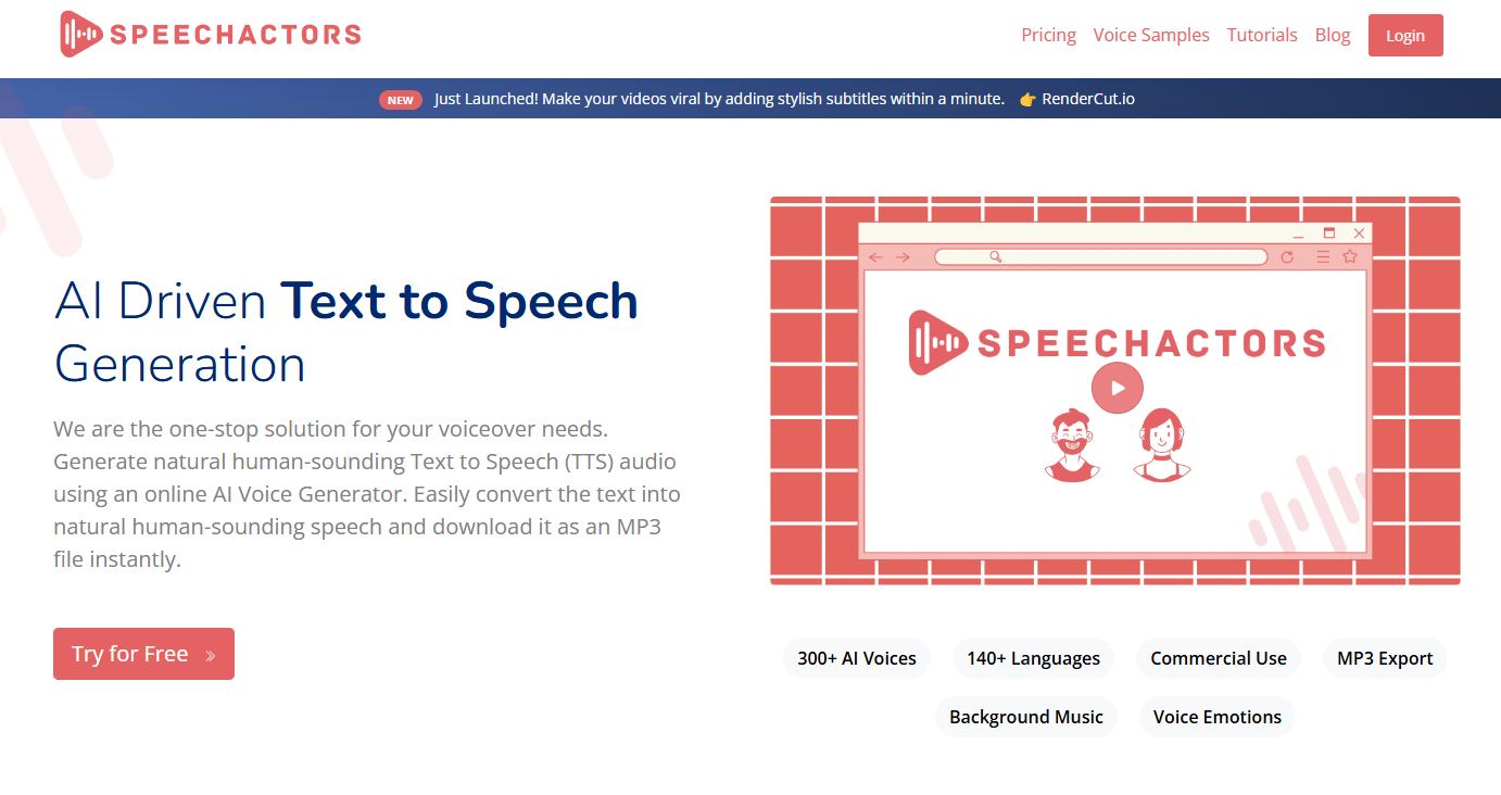 Create realistic Text to Voice and Video content is seconds! Choose from 900+ voices in 142 languages, download in MP3 or WAV formats.