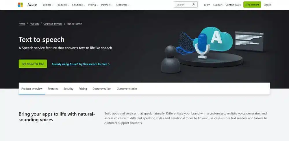 Azure Text-to-speech technology is a feature of the Azure Speech service that turns text into life-like speech. You can use the speech for commercial and personal use.