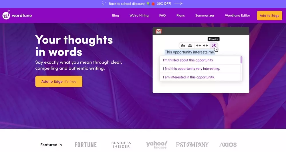 Wordtune aids you in writing flowing sentences that don’t lose the original intent. It offers you multiple versions of every sentence you need to rewrite.