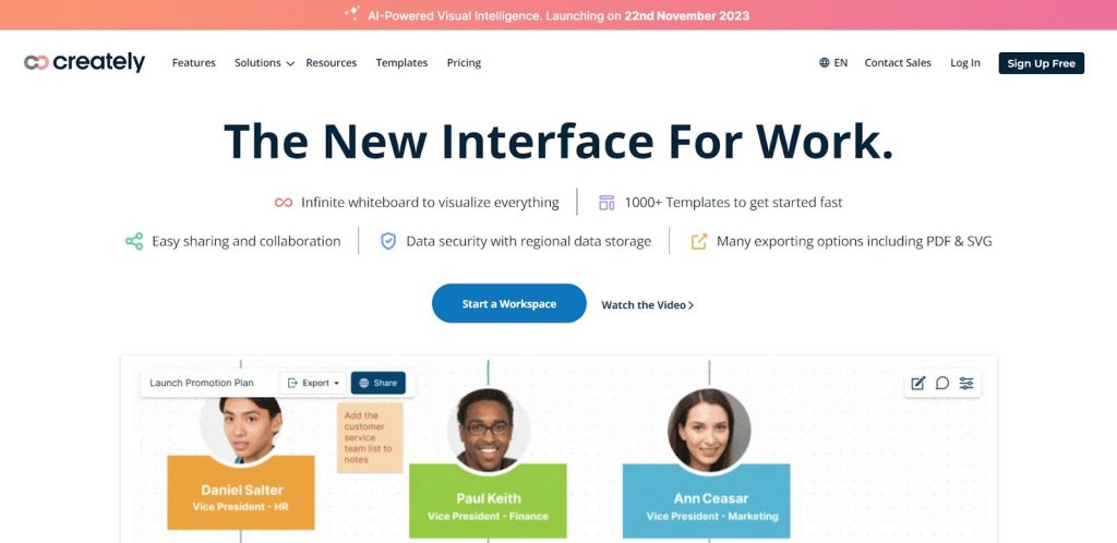 Creately lets pros make a wide range of diagrams. People and groups who want to organize their ideas artistically and clarify their points will love it.