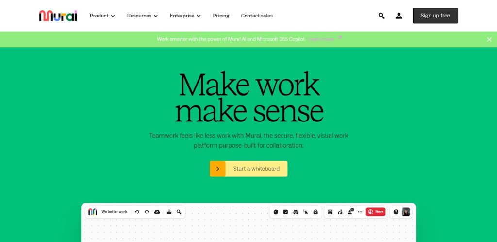 With Mural’s free plan, teams can collaborate seamlessly, regardless of distance, simulating the experience of being in the same room. It’s highly effective for various methodologies like design thinking, agile processes, and workshops. Additionally, Mural’s compatibility with popular productivity tools ensures smooth integration into existing workflows.