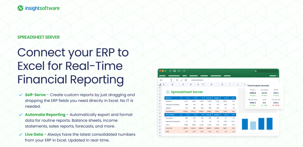 Spreadsheet Server from insightsoftware is a powerful financial reporting and analysis tool designed for CPA firms and finance teams. Its best feature is the seamless integration with ERP systems like Sage, allowing users to generate real-time reports directly within Excel. This eliminates manual data entry, streamlines workflows, and ensures accurate, up-to-date financial information.