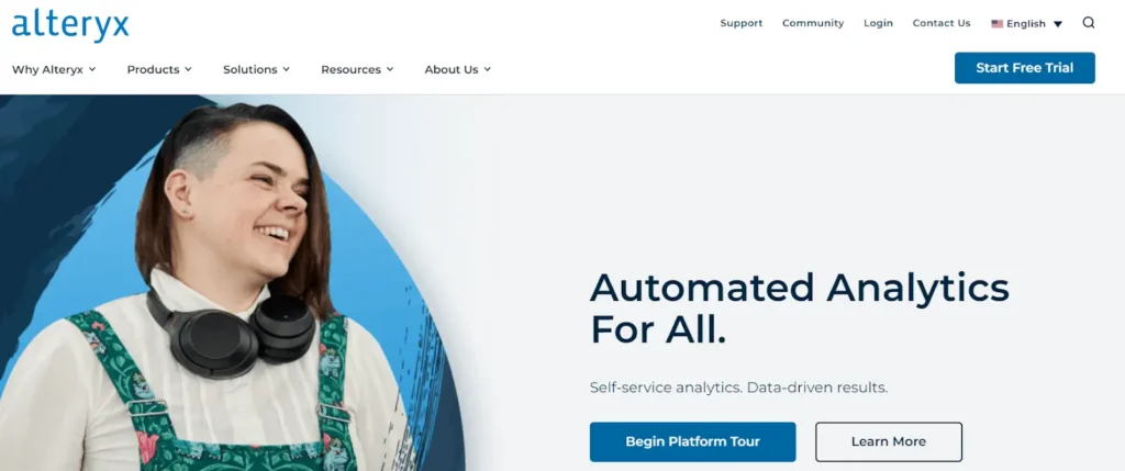 Alteryx is a self-service data analytics platform that streamlines data preparation and blending. It’s an alternative that empowers data scientists to optimize their workflows without the need for extensive programming. Alteryx provides users with a wide range of tools that facilitate data cleansing, transformation, and integration.