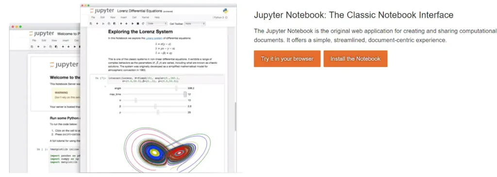 The Jupyter Notebook is a web-based open-source program that facilitates the creation and dissemination of documents incorporating live code, equations, graphics, and narrative text. The software has support for other computer languages, such as Python and R, rendering it a highly suitable option for doing interactive data manipulation and analysis.