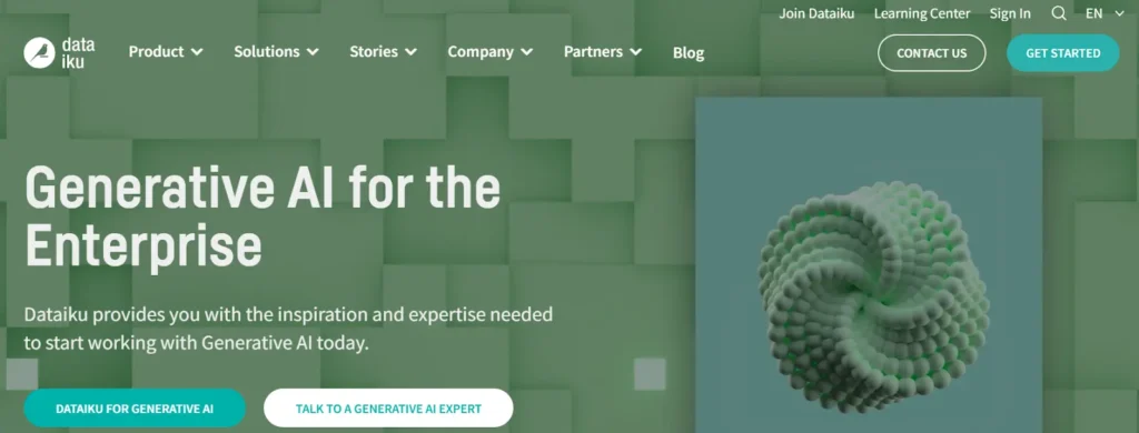 Dataiku is a collaborative platform that enables data scientists to work together on building and deploying machine learning models. Its emphasis on collaboration and integration boosts the productivity of data science teams. Dataiku offers the necessary inspiration and skills for anyone to commence their engagement with generative artificial intelligence in the present time.