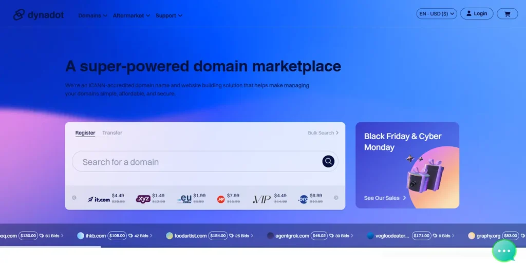 Dynadot is a domain name registrar and marketplace platform for buying and selling domains and websites. While it is not specifically focused on full-fledged online businesses, it’s a popular platform for buying websites and online properties in the early stages of development.