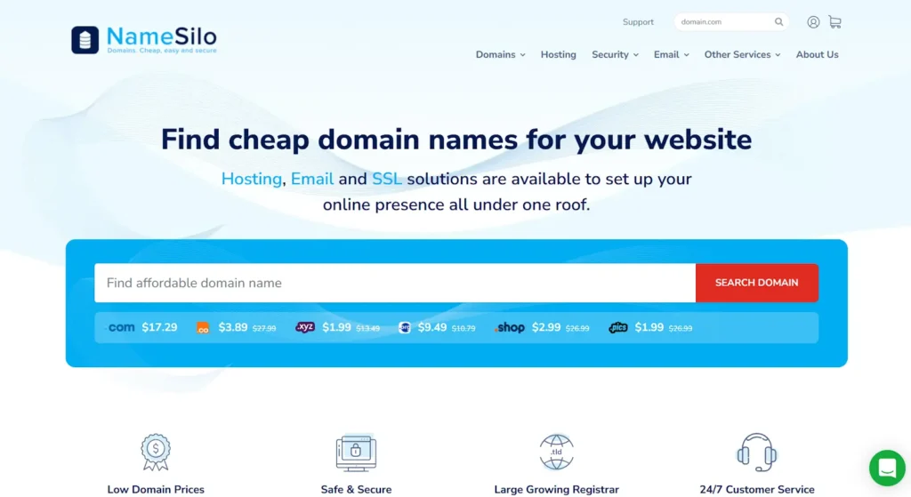 Like Dynadot, NameSilo is a domain registrar with a strong marketplace for buying and selling domain names. While it’s not a traditional online business platform, it offers opportunities for buyers and sellers in the website and domain space.