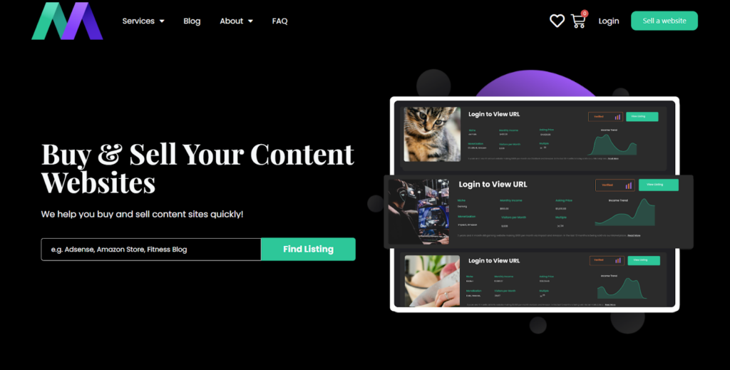 Motion Invest is a marketplace for smaller online businesses, typically valued between $2,000 and $200,000. This platform is ideal for new investors or those looking to purchase smaller websites with room for growth. Sellers can list content-based websites, affiliate sites, and e-commerce businesses.