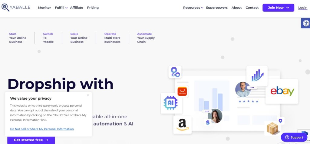 Yakkyofy operates as an all-in-one dropshipping and fulfillment solution that automates product sourcing, packaging, and international shipping for cross-border e-commerce businesses. The platform automates order processing from multiple sales channels and provides supplier management tools to maintain product quality and delivery standards. Yakkyofy’s technology integrates with major e-commerce platforms to synchronize inventory levels and order status updates.